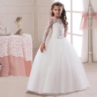 3 14y Kids Girls Long White Lace Flower Party Ball Gown Prom Dresses Kid Girl Princess Wedding Children Birthday Dress Shopee Malaysia